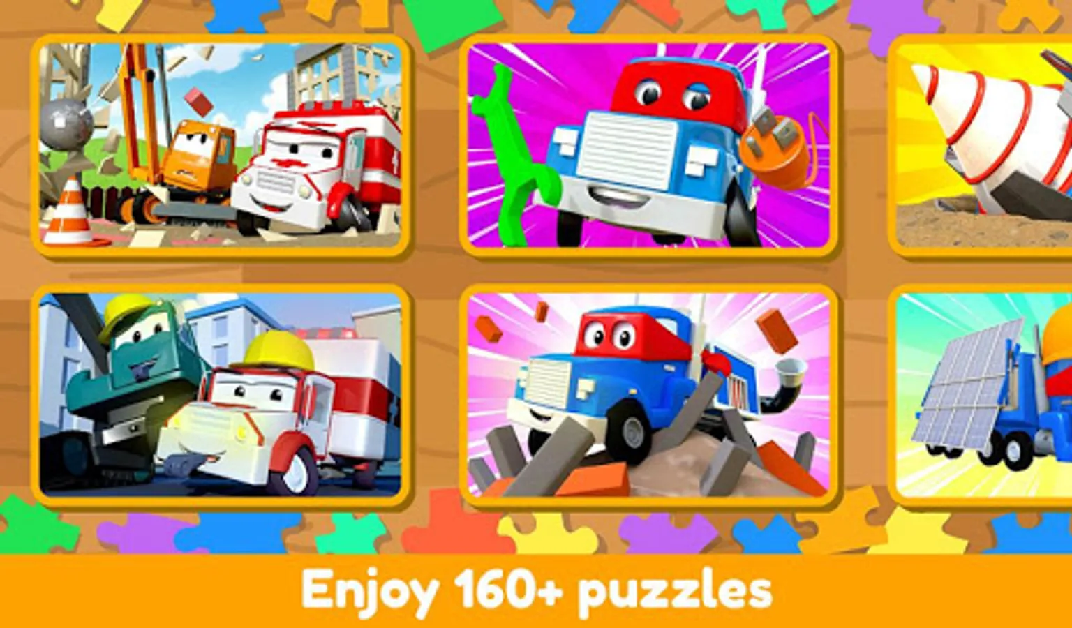 Packed with beautiful images of cars, trucks, air planes and other vehicles from YouTube Kids’ hit series Car City, kids will love revealing the pictures of this relaxing puzzle game!