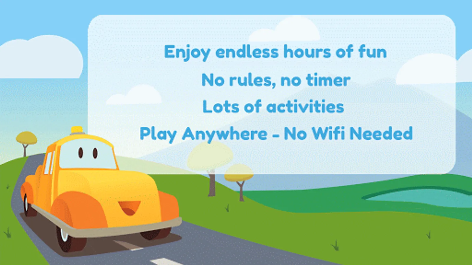 - Play without wi-fi: perfect to bring on your road trips!