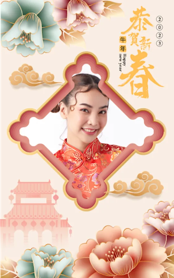 Send greeting cards with messages to friends and family. Customize your own text share with friends and family, Chinese New Year 2023 Frame
