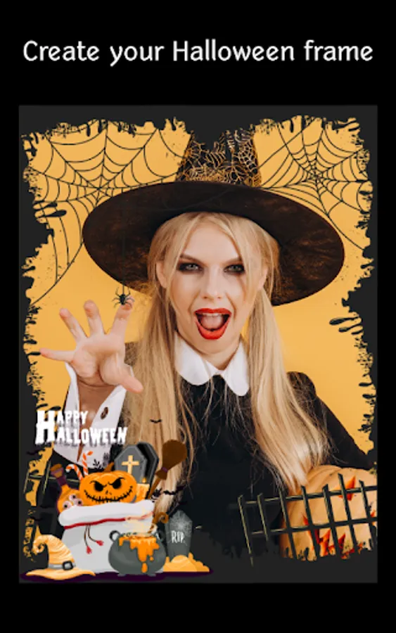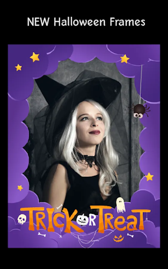 Easy to make Halloween photo. Add beautiful halloween stickers and frames on your picture.You can edit photo with advanced editor for add effect filters,text,chop,blur,rotate and more feature.