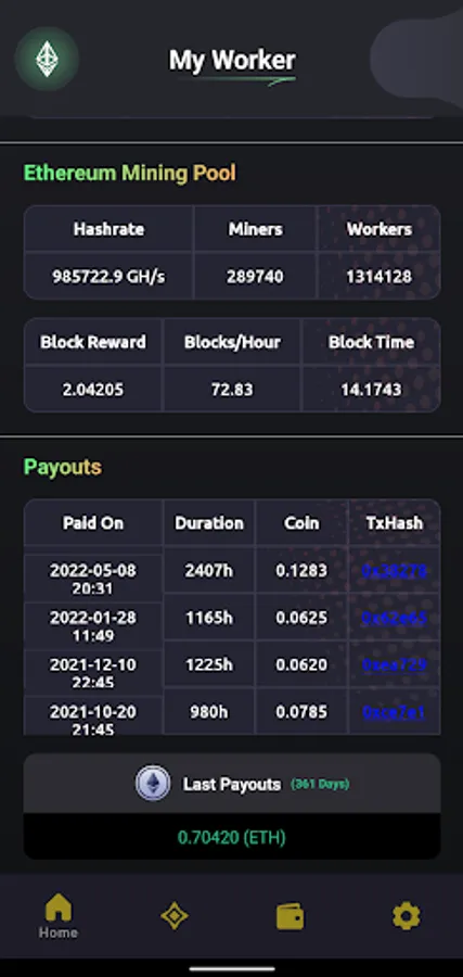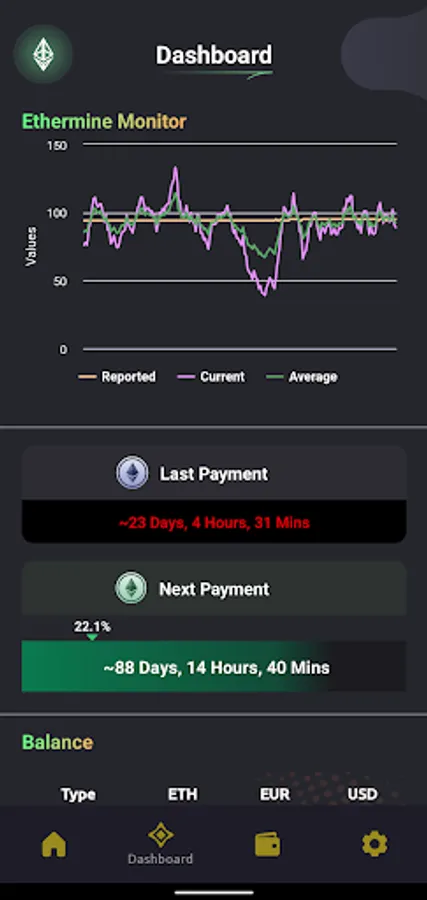 Monitor for Ethermine Pool is 3rd application for checking status on Ethermine (Ethermine.org). Check your Hashrate, Balance, Workers, Payouts, Charts. Clean user interface and simple to use, for a great user experience!