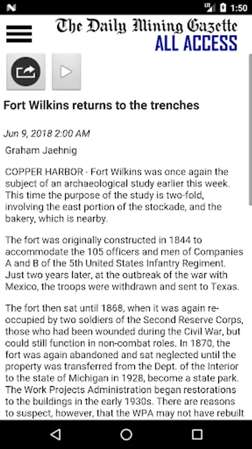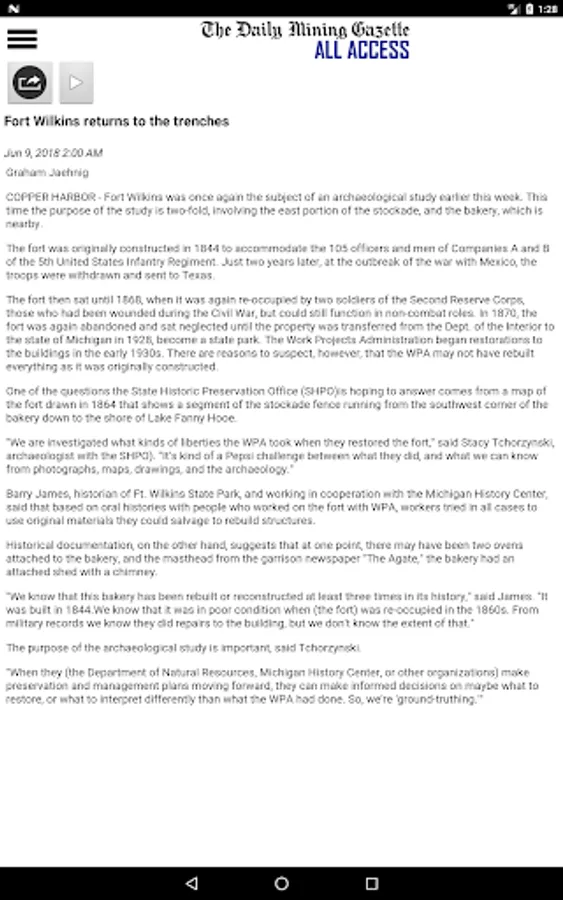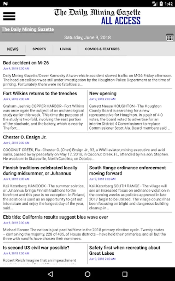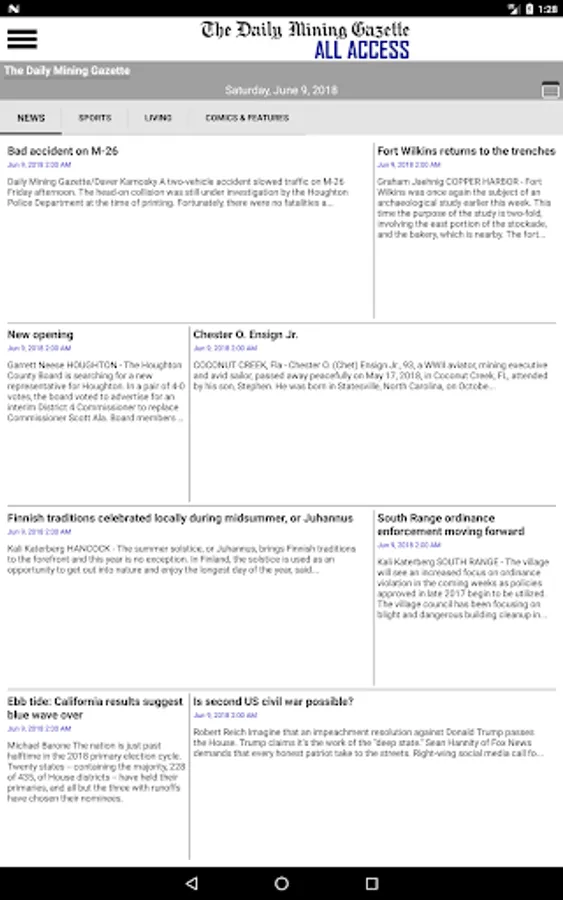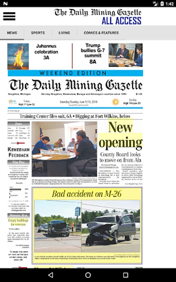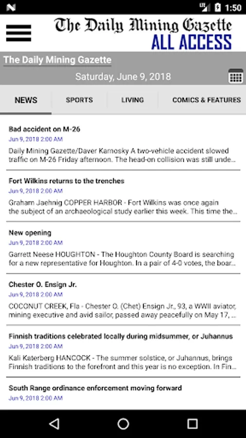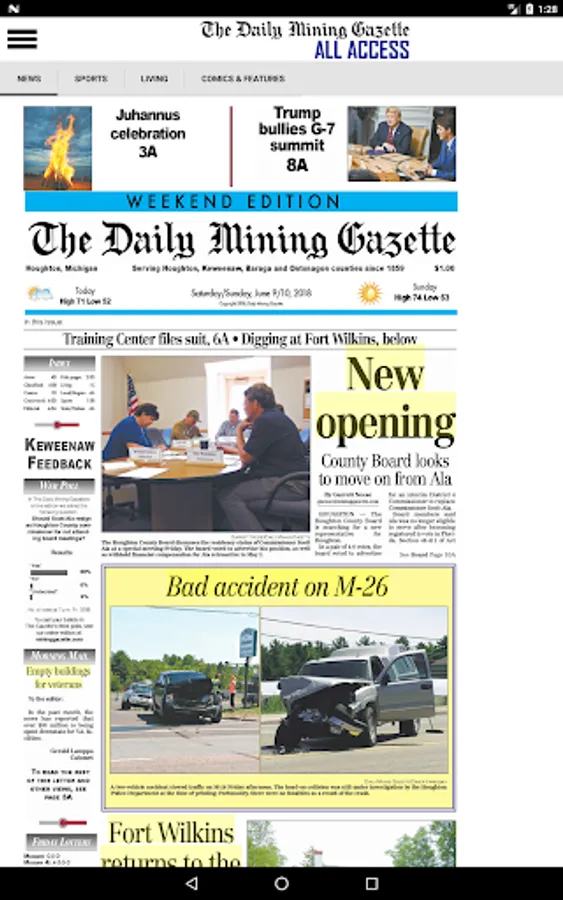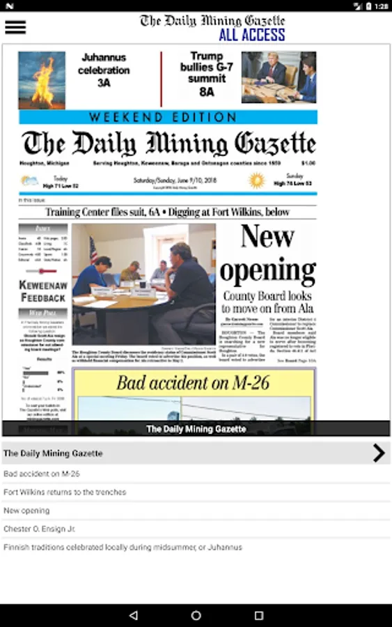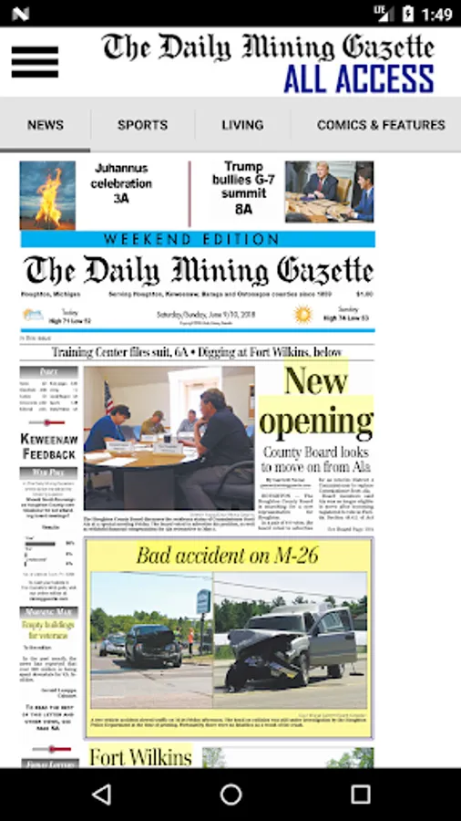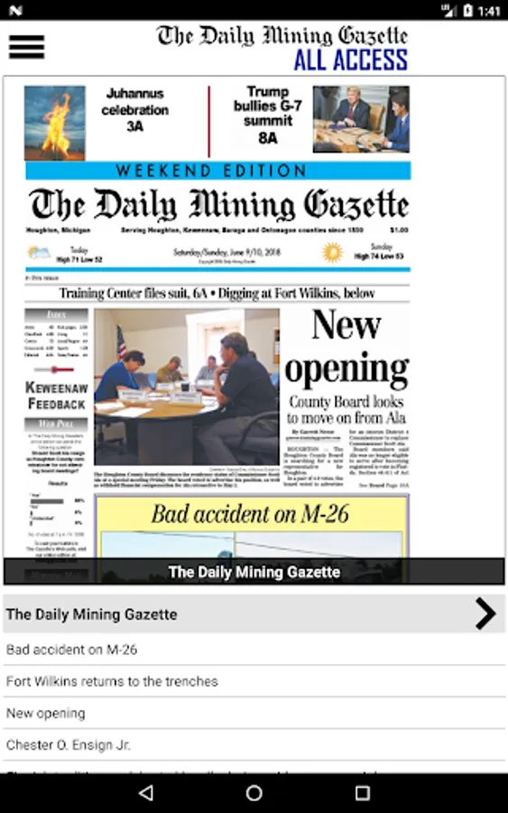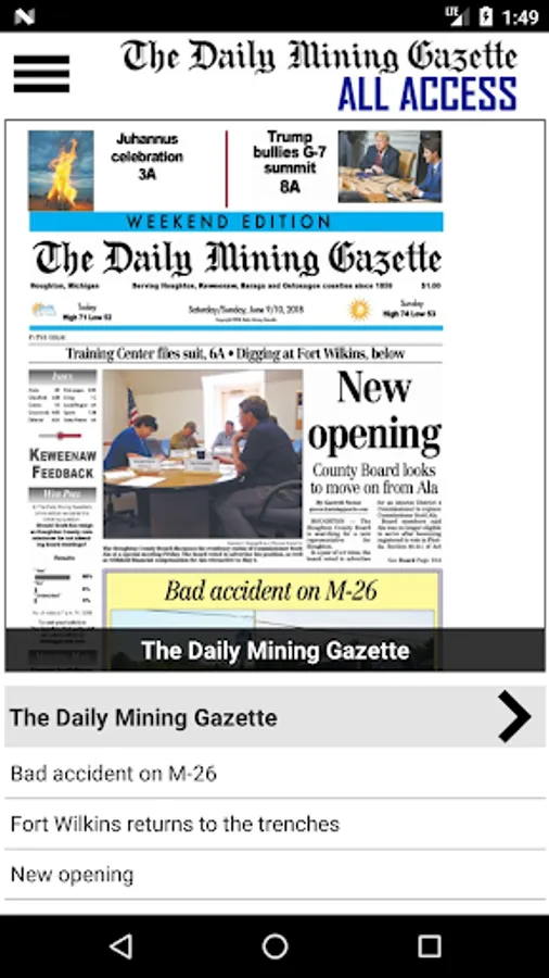 Stay on top of news from Houghton and surrounding areas by receiving the full print version of the The Daily Mining Gazette on your Android device. Every page of every edition is delivered to your device. The Daily Mining Gazette is the best source for local and national news, sports, weather and features in the Houghton and the Copper Country region of the Keweenaw Peninsula area of Michigan. Download the app to view the printed pages of the newspaper or read headlines and stories along with related photos in a built-in story viewer.