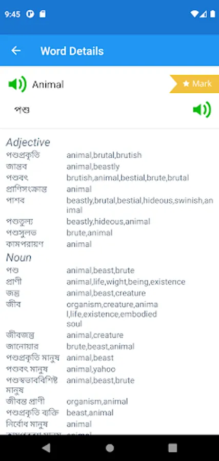 You can bookmark important words, quickly increase vocabulary with Flash Card feature.