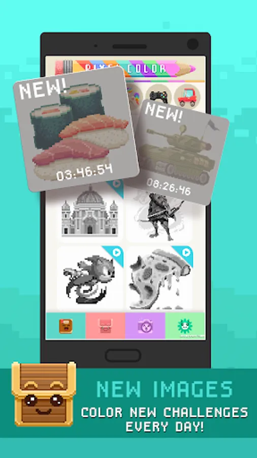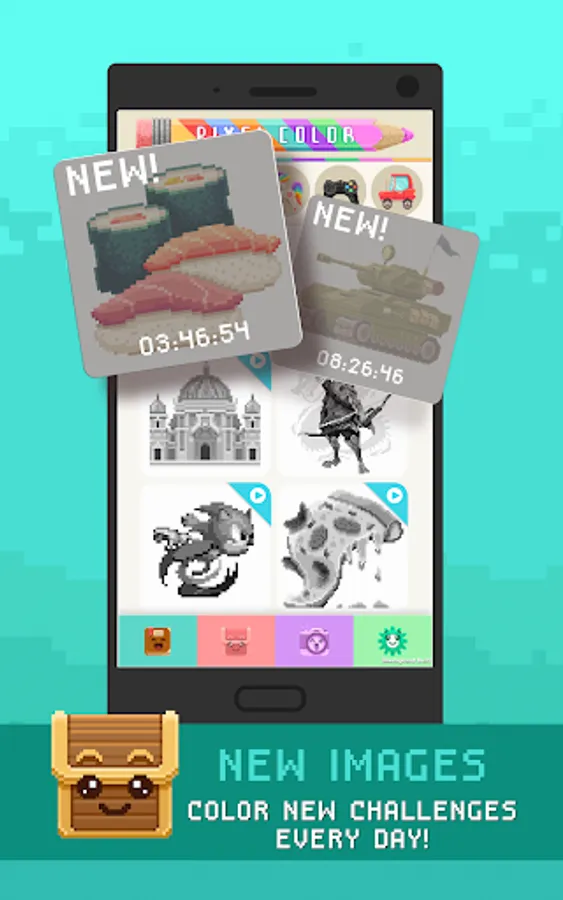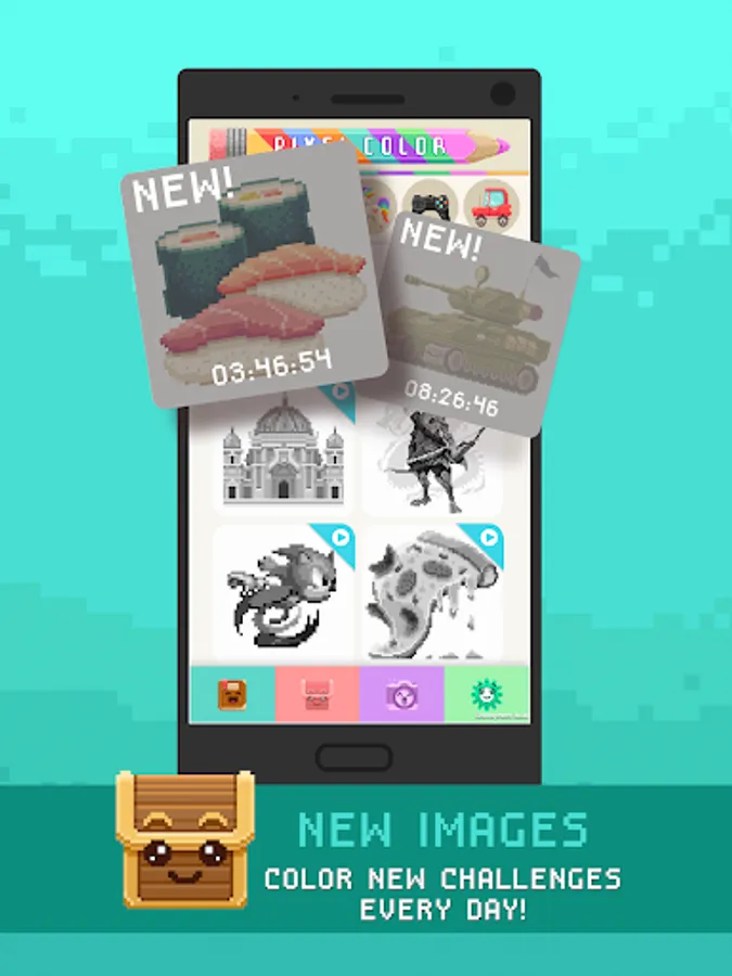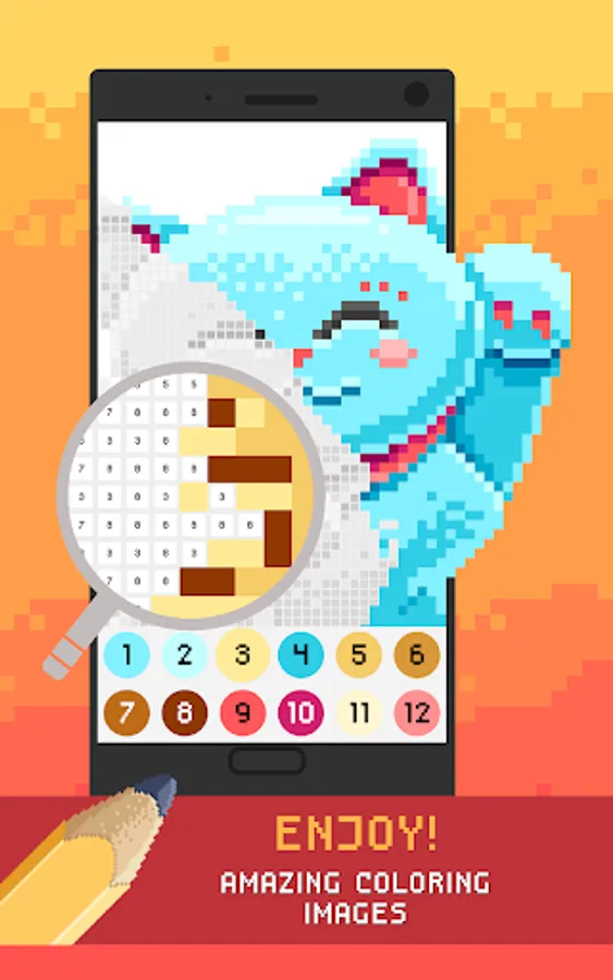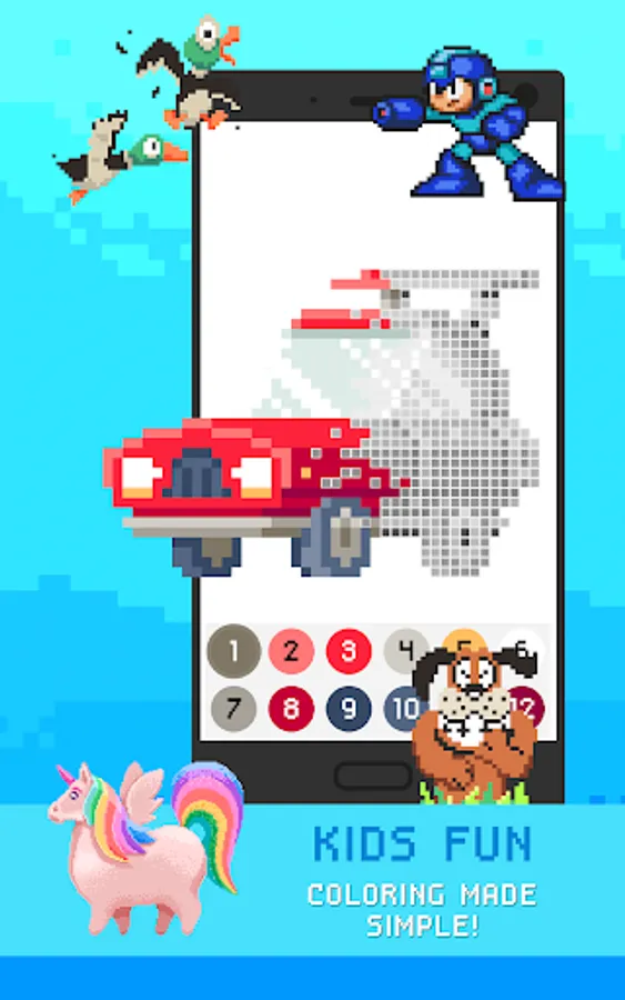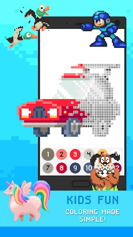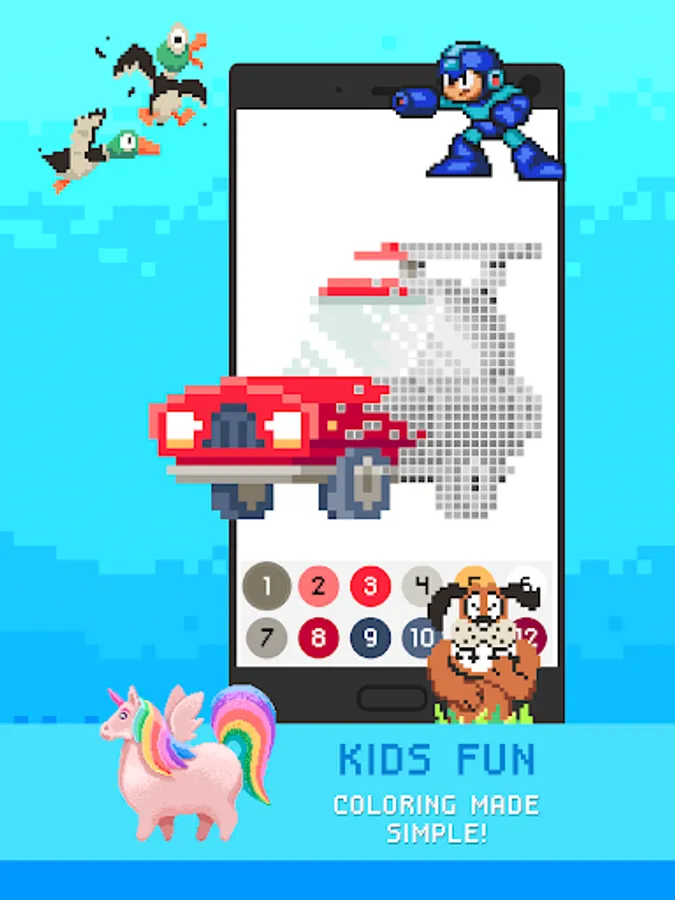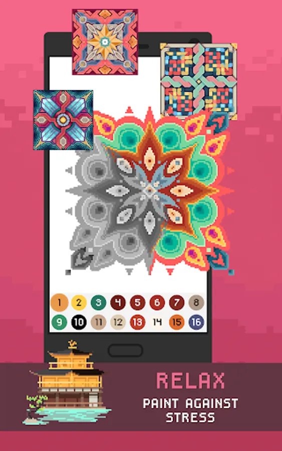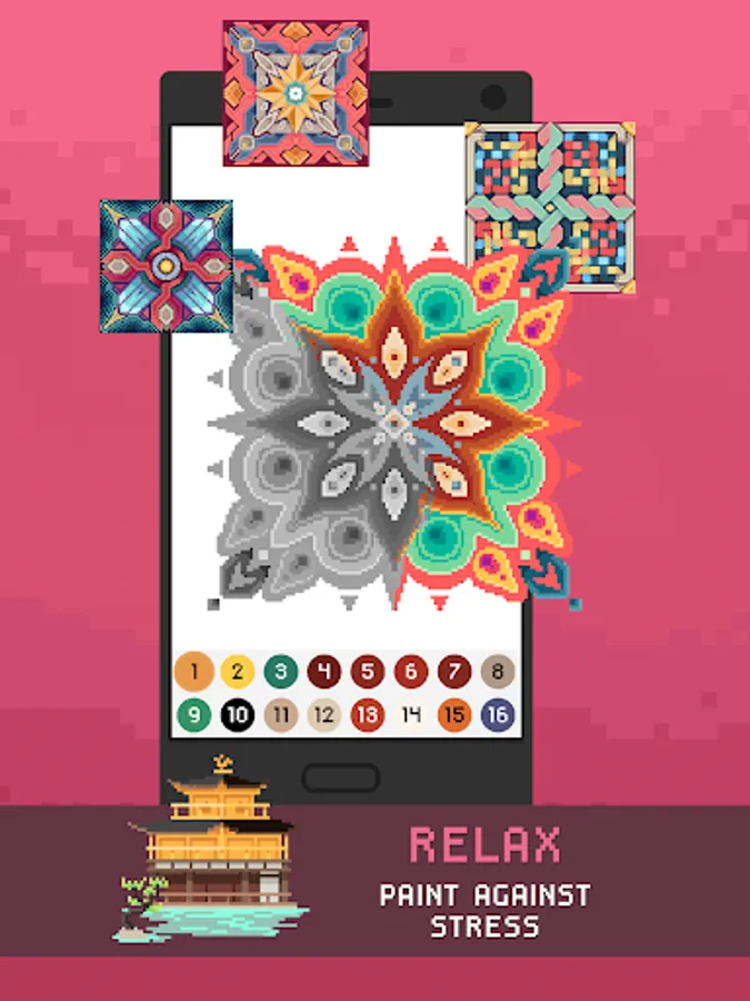 Relax and enjoy Pixel Color, where you can follow a numbered pattern to paint Mandalas, Princesses, Animals, Food, Cars and Monsters among others.