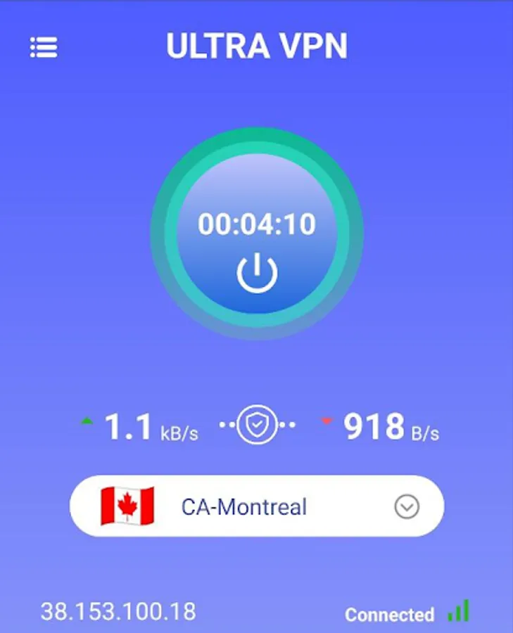 Ultra VPN - Secure VPN Proxy is a lightning-fast app provide free VPN service. no need any setup, just simply click one button, you can access the Internet securely and anonymously.