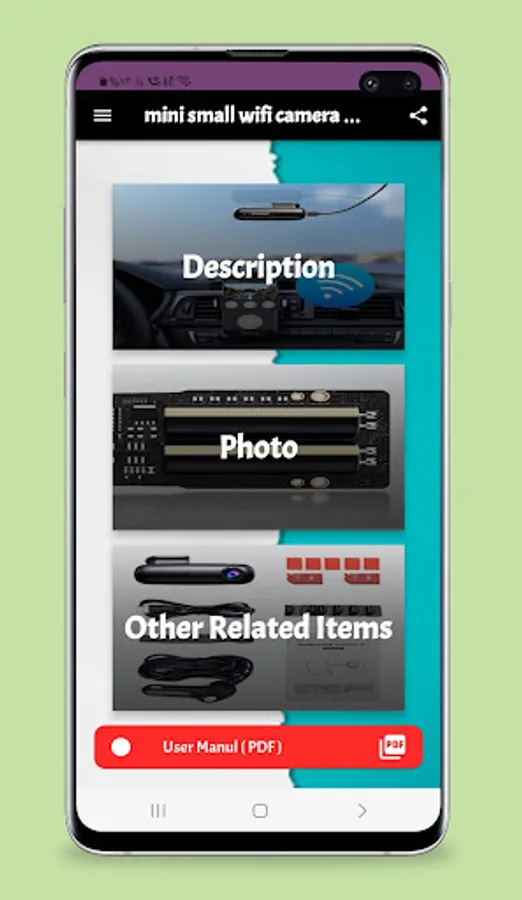 In mini small wifi camera guide app we supported many sections of content that will let you now more information about mini small wifi camera guide