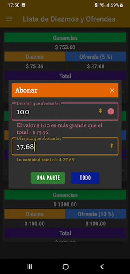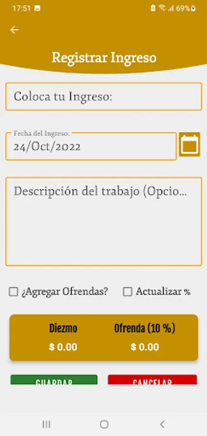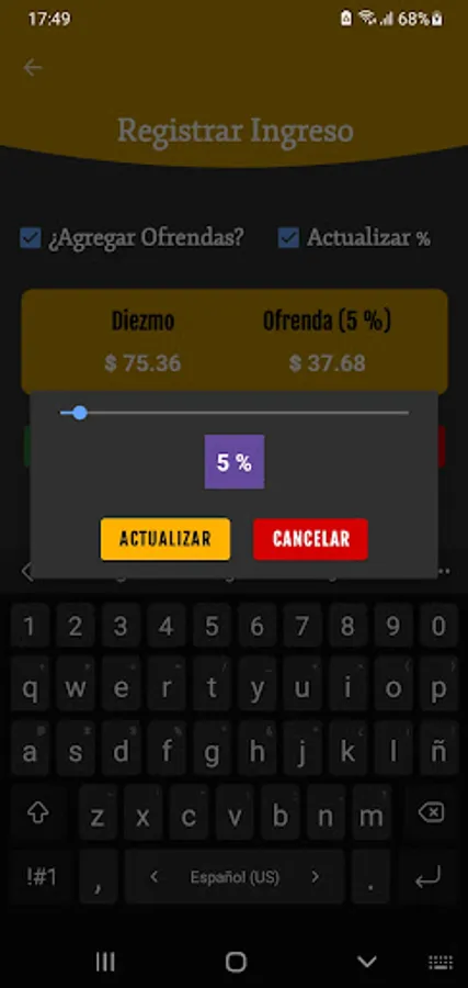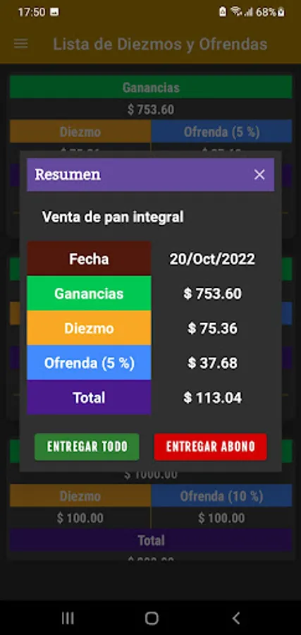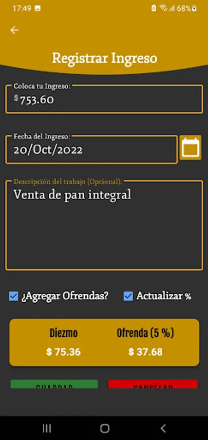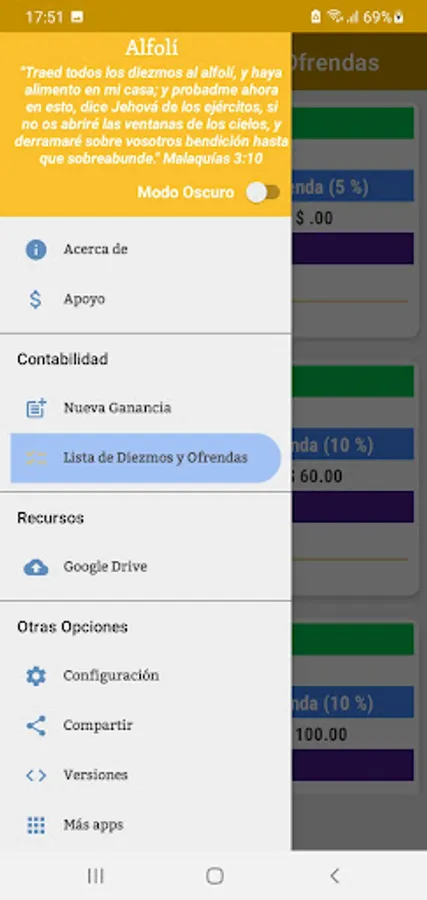 With Alfolí you will be able to keep track of the tithes and offerings that you must calculate from your earnings. You only need to register your earnings and Alfolí will automatically calculate the tithe and offering (if you check the box). This way, you will know at the end of the week how much you have to give.