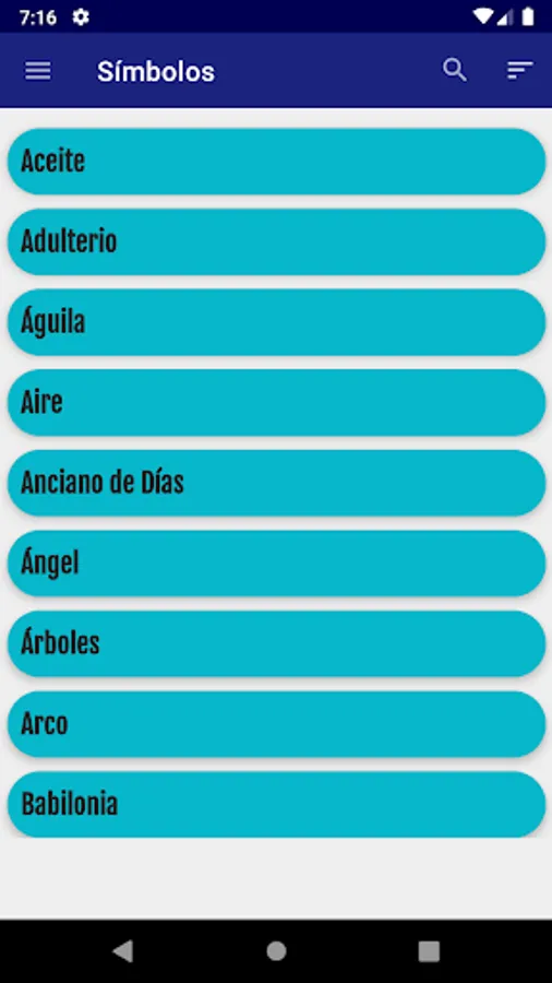This app has the purpose of offering you the largest number of biblical symbols that one can find, showing you the different meanings that a symbol can have, as well as the different biblical quotes that demonstrate it.