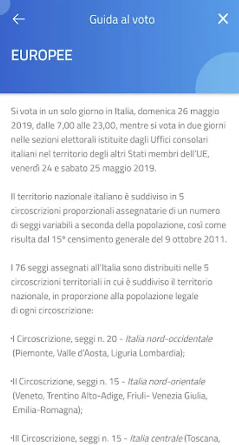- Ability to follow the data of voter turnout and polls of the upcoming elections related to all of Italy or to particular entities of interest
