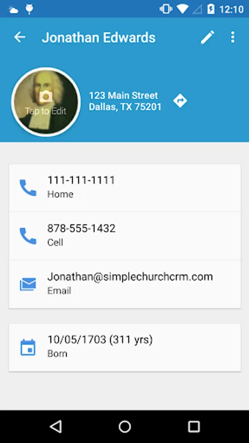 - View all information for a person. Including personal, contact, dates, custom fields, and family.