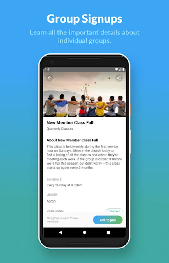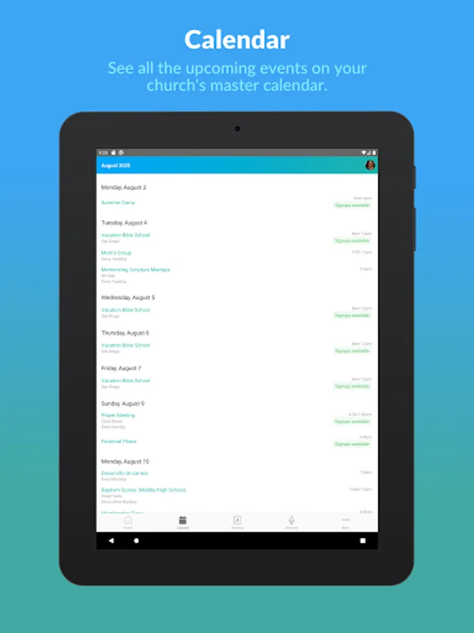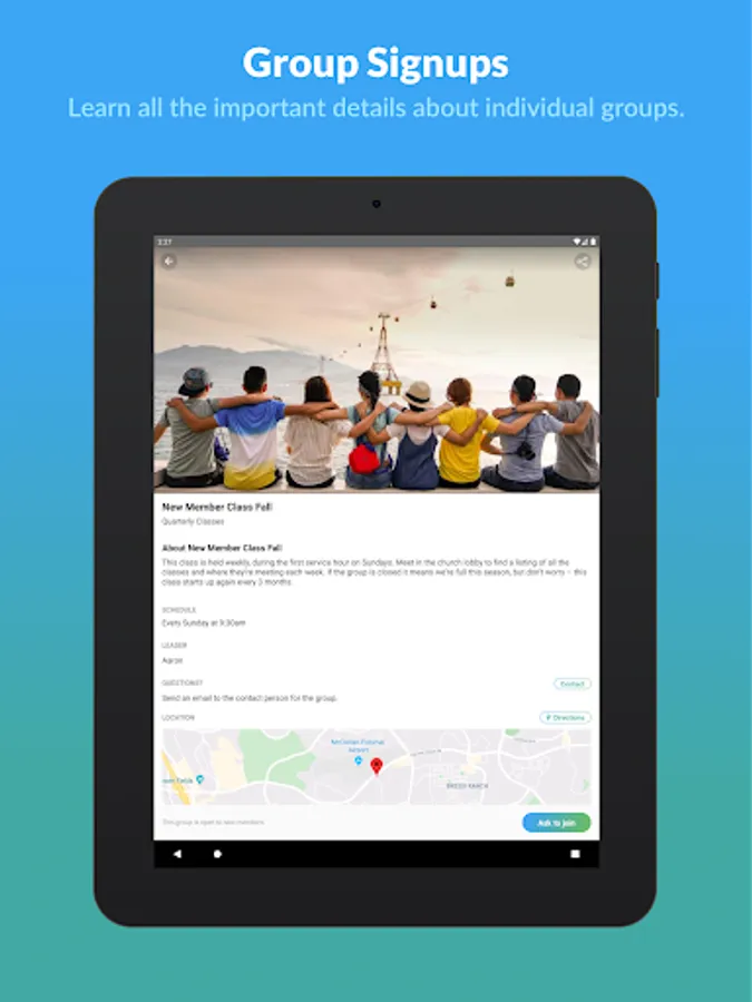 My Church Center by Planning Center is the fastest way to get information about your church, pre-check your family, give to your church, browse & join groups, register for events on Android.