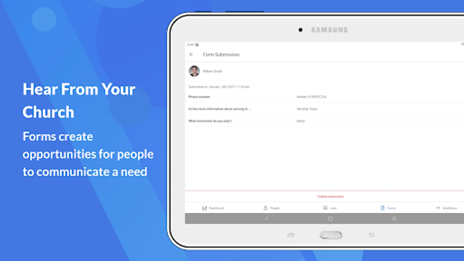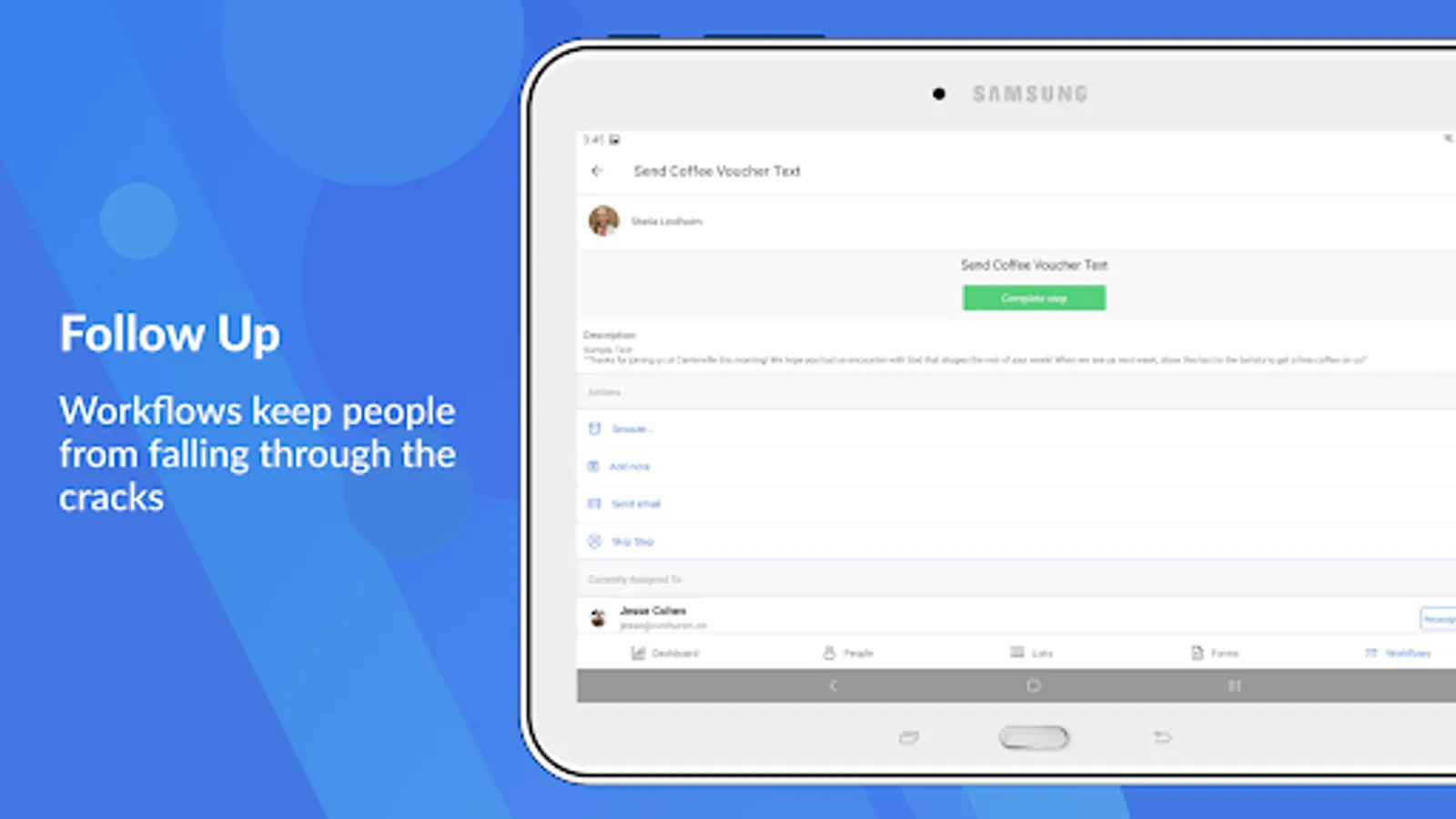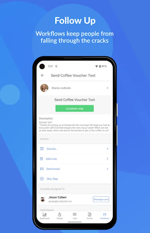 • Stay on top of the processes in your church with Workflows.