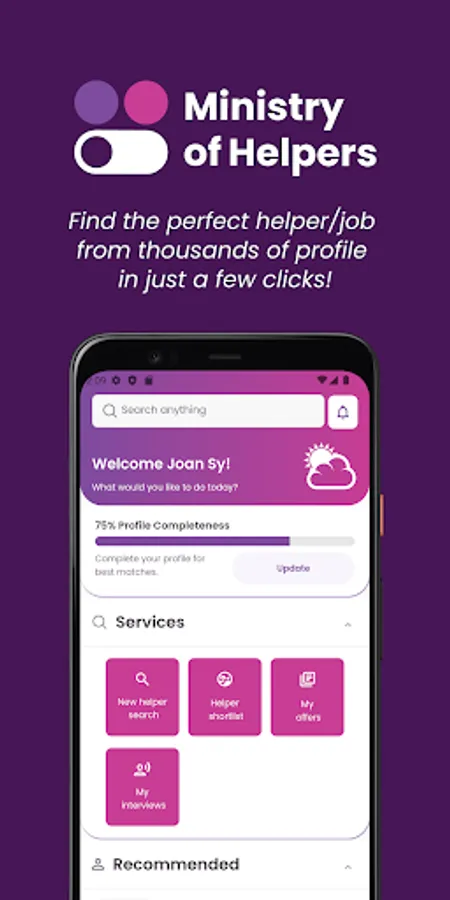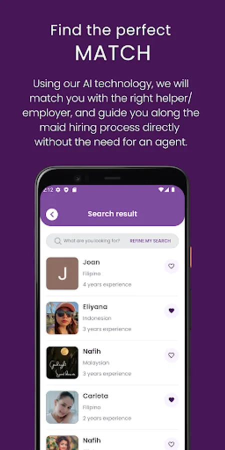 Both employers and helpers now have the opportunity to choose their perfect match! No need to read hundreds of CVs, our AI-technology will sort your best matches based on your requirements. You can screen, message, schedule a video interview, make offers and generate free contracts, all in one app. Prefer to have someone else do the processing for you? Get in touch with ethical agencies with just one click!