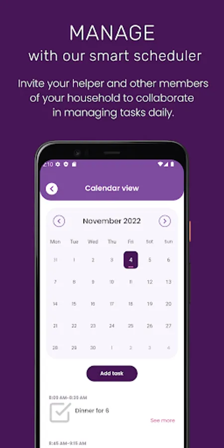 MANAGE your household with our smart Scheduler, where you can invite your helper to collaborate in making your homes run better.