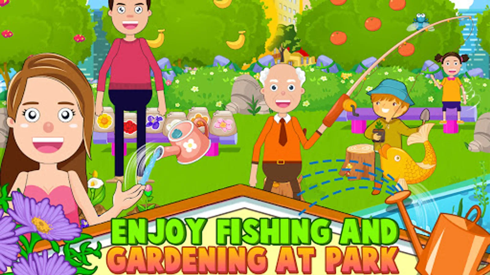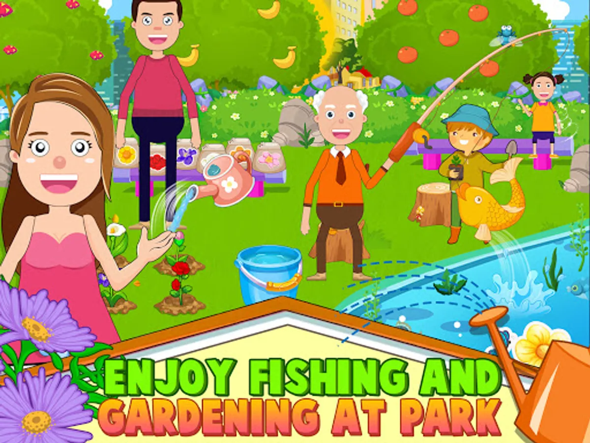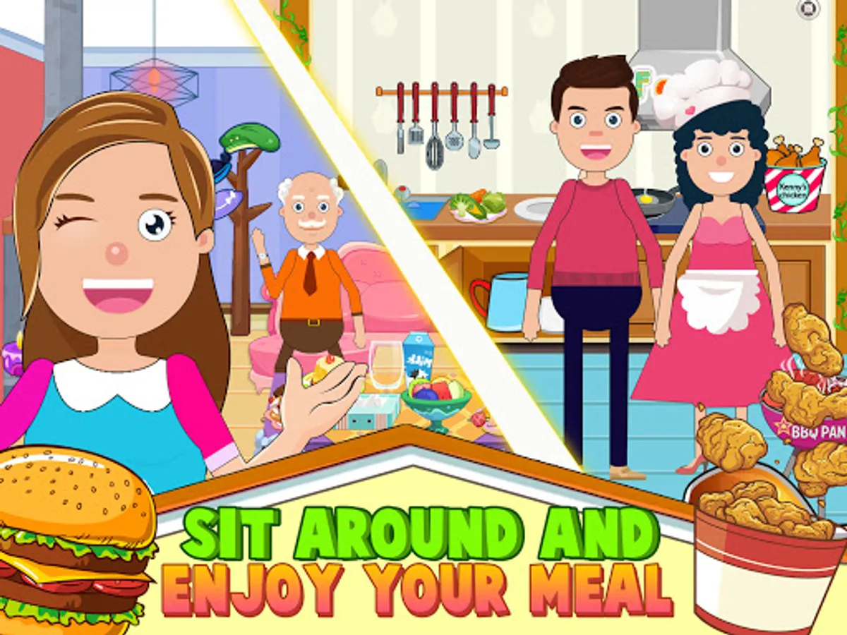 In this pretend play mini town home town games for kids, you can visit and explore rooms and home of your family after school starting from the kitchen and cook some delicious foods that bought from town stores and play around with all the kitchen utensils. Cook yummy food in the mini-town kitchen using different ingredients. You will definitely like home stories in this pretend home cool new game. Your family is in a virtual town that is why this pretend play game has so much for you. So, visiting your grandparents home. Cooking tasty food of games world and family games.