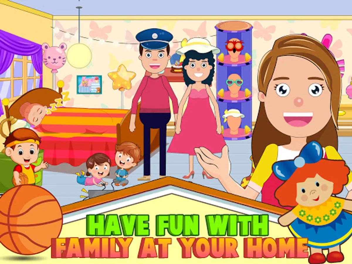 Get all your dreams to come true with a highly interactive pretend play toddler home family playhouse game. Enjoy visiting every room of the dollhouse home with your favorite mini town home game. Let’s start playing in different rooms and have fun decorations pretending to play games for kids. Learn how to live with family in kids play together games.