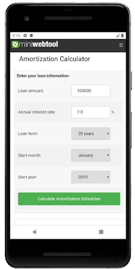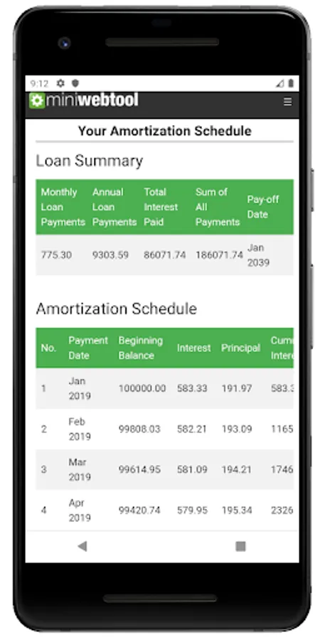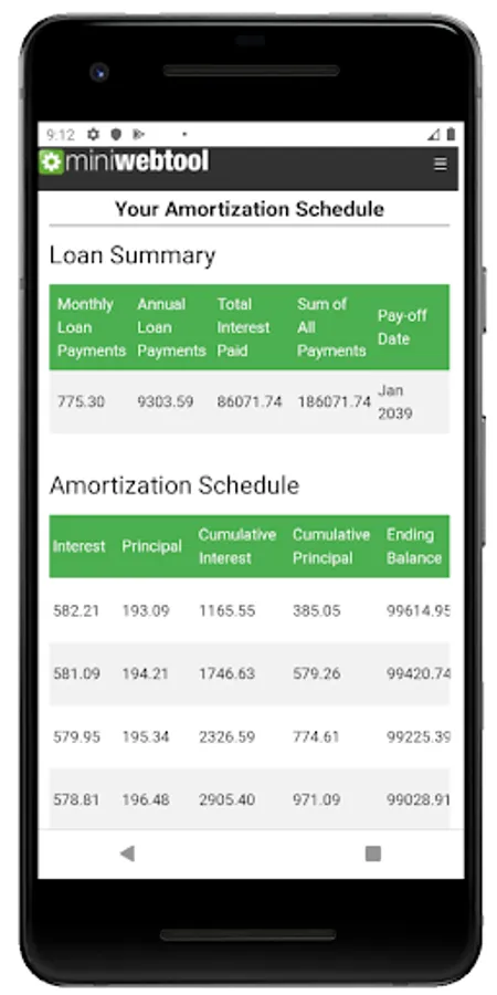 The calculator will show you the breakdown between principal and interest in your mortgage payments and amortization tables with complete mortgage amortization schedules for the loan. You can view the amortization table in a monthly format.