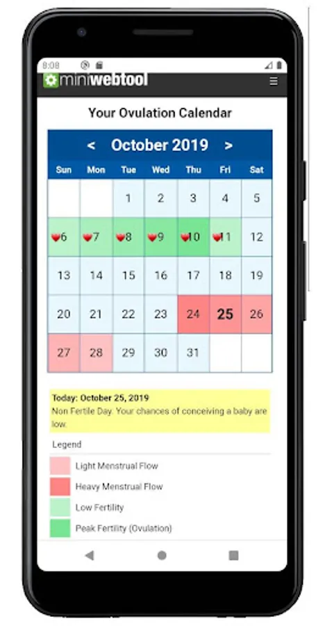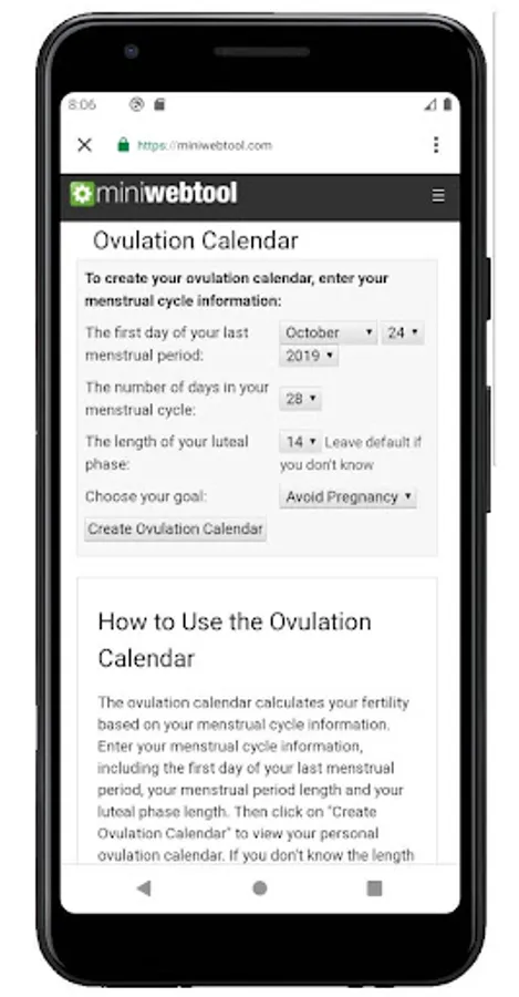 The ovulation calendar calculates your fertility based on your menstrual cycle information. Enter your menstrual cycle information, including the first day of your last menstrual period, your menstrual period length and your luteal phase length. Then click on "Create Ovulation Calendar" to view your personal ovulation calendar. If you don't know the length of your menstrual period or your luteal phase, you may use the default values, which represent the average woman.