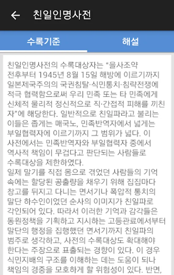 ▶ 검색내용/ 발간사/ 수록기준에서 내용 검색 시 상단바의 확대 및 축소