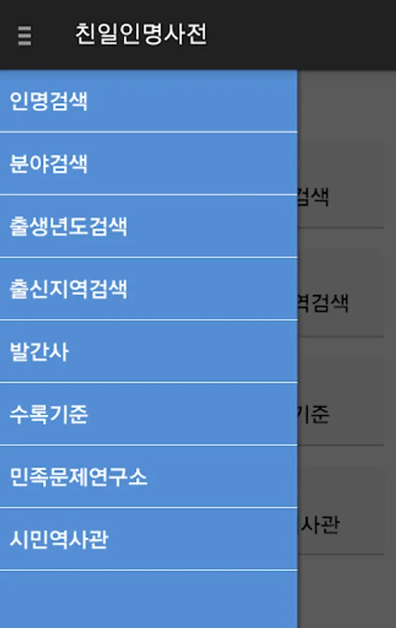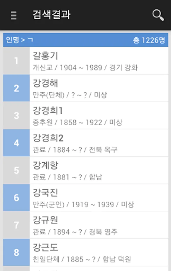 ▶ 분야검색-종교/직업/활동지역검색-검색결과-상세검색