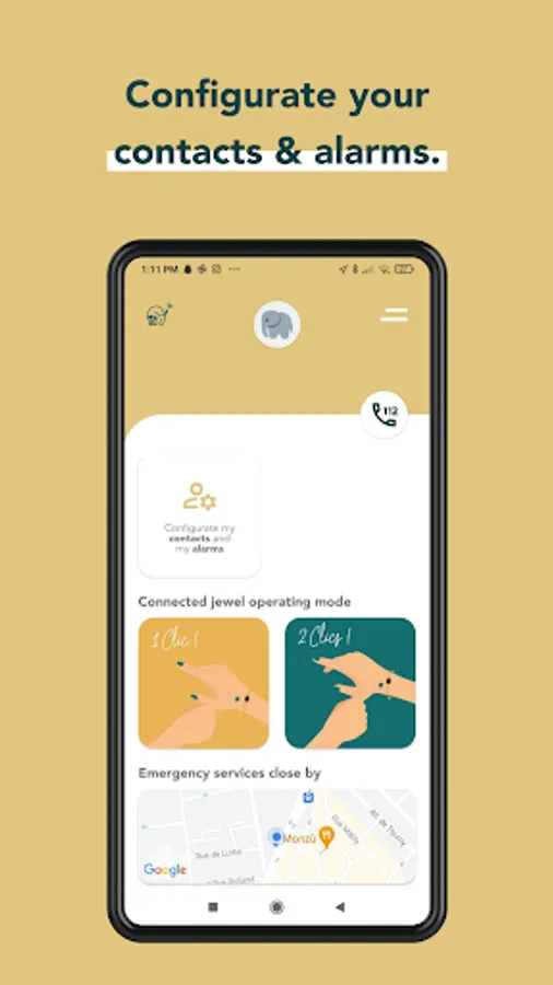 Click once : alarm your friends and family in case you are in danger and secure your moves.