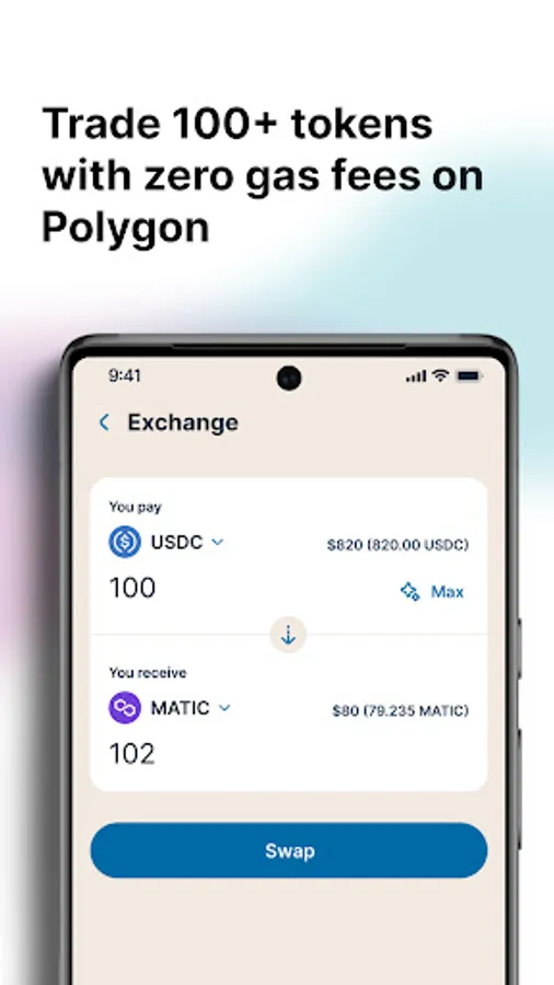 Buy USDC, USDT (Tether), DAI and more using Google Pay, Debit Card or Bank Transfer in over 180 countries, including the US, Brazil, Argentina and Turkey. Trade between 100+ tokens with zero gas fees.