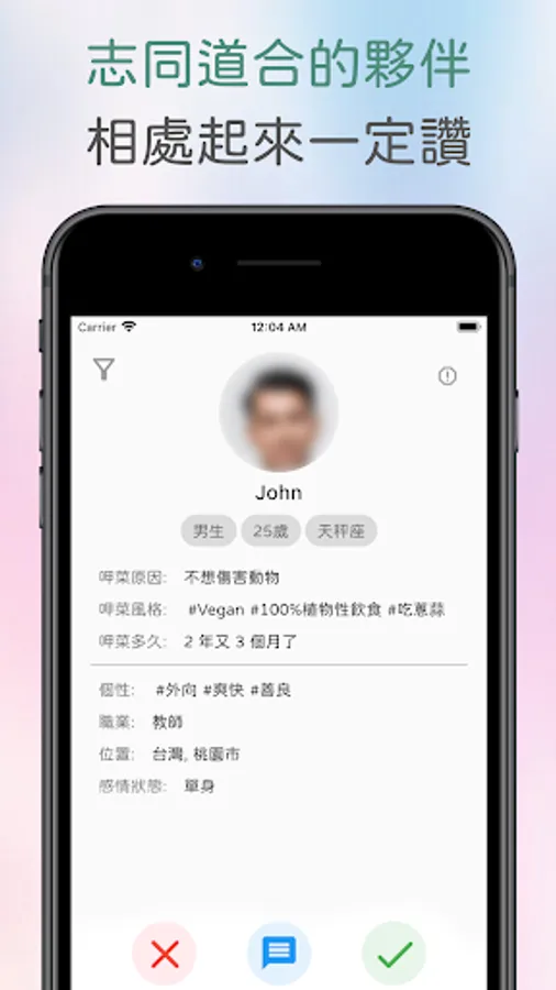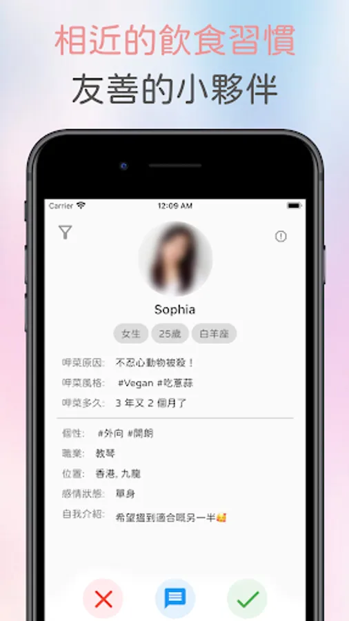 P.S. This app is designed for vegetarians who really want to make friends, regardless of age, horoscope, gender, or GAY, as long as you are serious about making friends,