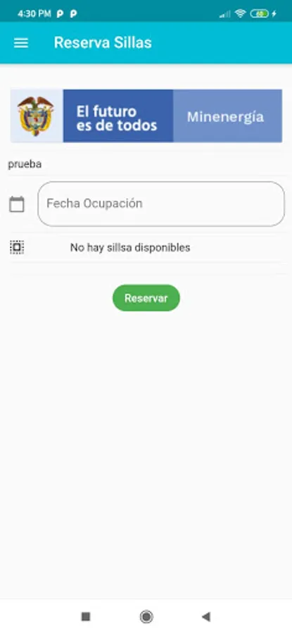 Application to reserve spaces by dependency in the Ministry of Mines by dependency. according to its maximum occupancy%.