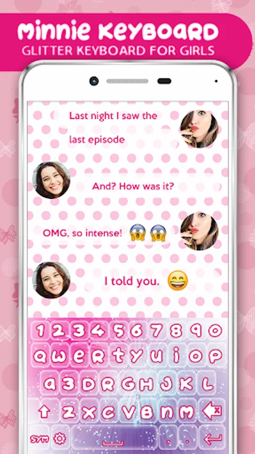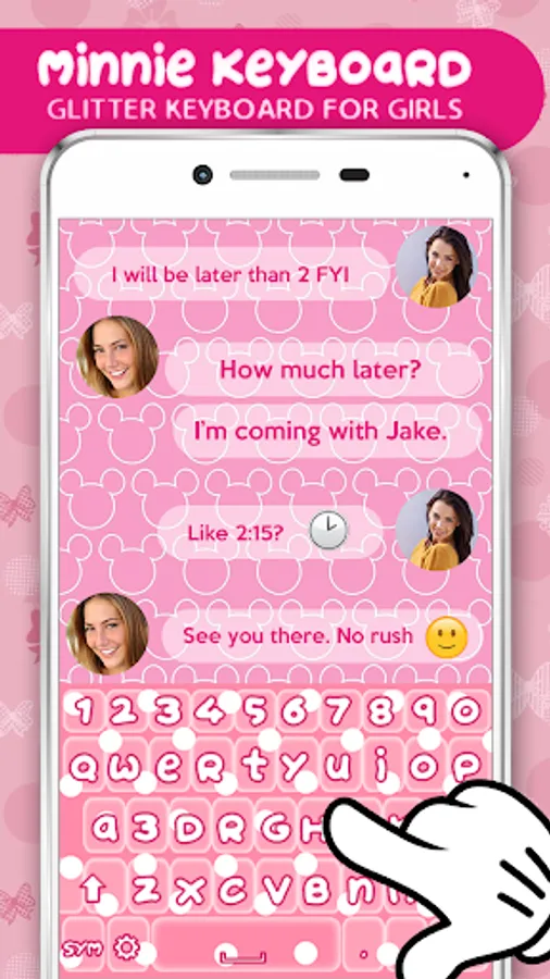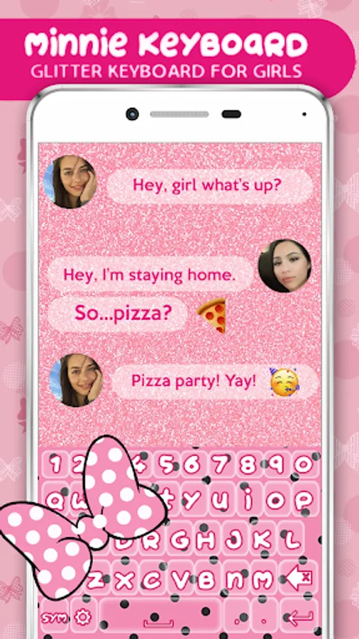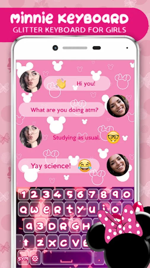 Bring style, charm and a lot of glitter to your message typing, now with this fabulous ''Minnie Glitter Keyboard''! Forget about unnoticed and boring keyboard themes, and start using this beautiful pink keyboard with Minnie theme instead! Install the magical ''pink sparkly keyboard'' and enjoy using your phone for texting every second! Send special messages to your crush, or secret texts to your best friend, using this very special Minnie Glitter Keyboard! Let ''minnie bow keyboard'' and cute minnie ears be the part of your everyday routine! Have a smile on your face whenever you unlock your phone and enter your new special diamond keyboard theme! Download ''girly keyboard'' and enjoy stylish text font, fabulous minnie keypad and good looking glitter typing keys! Download Minnie Glitter Keyboard and have the most stylish keyboard skins ever!