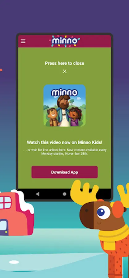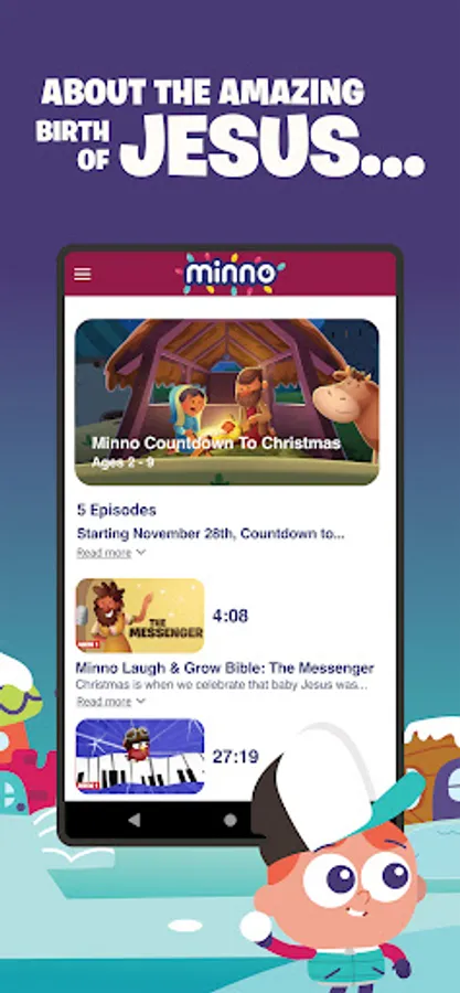 Minno is the #1 source of Christian content for children, and now kids can enjoy 4 FREE weeks of programming featuring nearly 3 hours of Christmas cartoons, videos, shows, and movies, with episodes from over 10 of Minno's most beloved shows… all for FREE with this app!