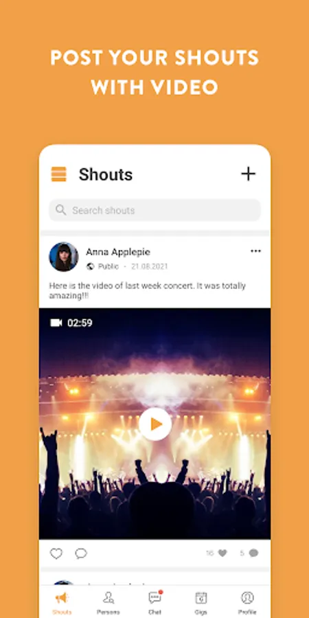 It is important to us to offer a platform where all musicians can exchange ideas: In the shouts you can find posts from musicians around the world and post your own photos and videos. Search for other musicians in your city who play your instrument and chat with them.