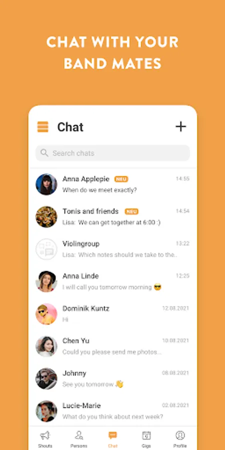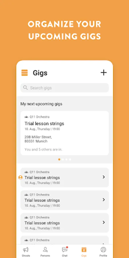 No matter if you play cello, violin or guitar, with Gigs by BAM nothing can stop your concert tour. For us it is important to offer a platform where all musicians can exchange ideas: in the chat area of your groups you can send photos of your last performance directly to your band colleagues, make appointments and much more.