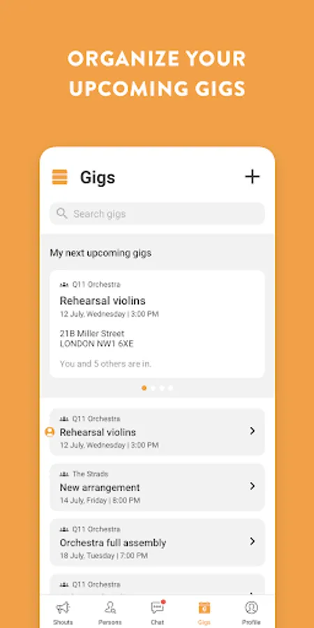 • Organise your band, your orchestra at any time and use the gigs function for your band appointments.
