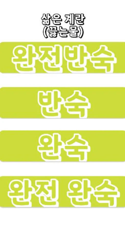 It is divided into completely soft-boiled, soft-boiled, hard-boiled, and completely hard-boiled, allowing you to easily boil eggs.