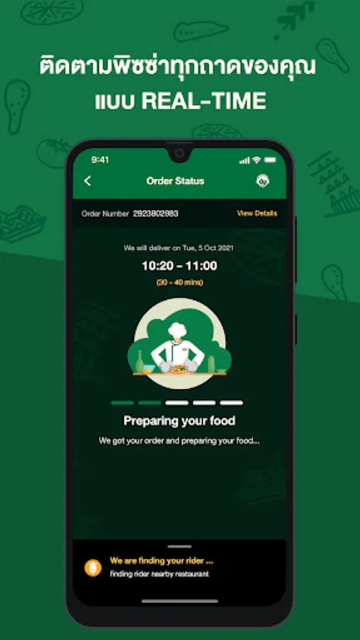 * Real time tracking of your your pizza