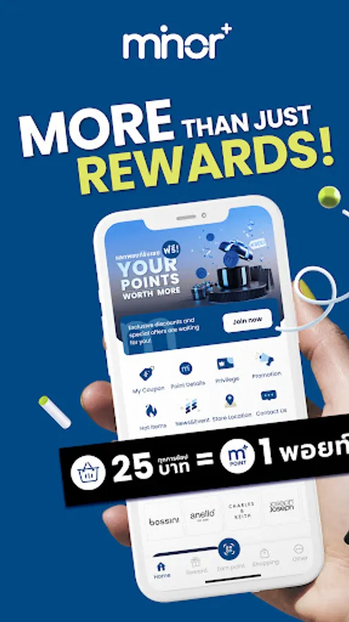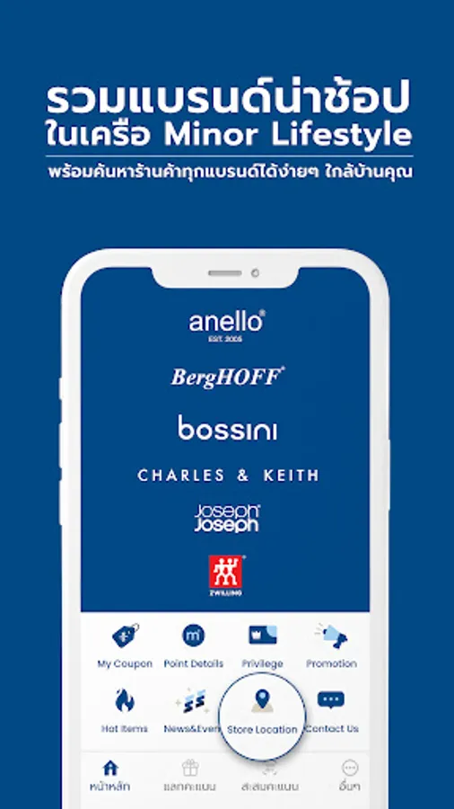 Easy shopping, Every purchase counts. When spending every 25 baht, get 1 point. This application are included the Minor Lifestyle brands, along with updates on promotions, new products, stores near you, and interesting news Guarantee that there is no trend.