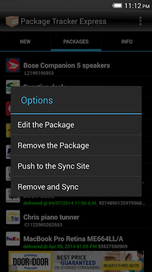 2. Label/edit/delete package (hint: long touch the tracking #, and the options will pop up)