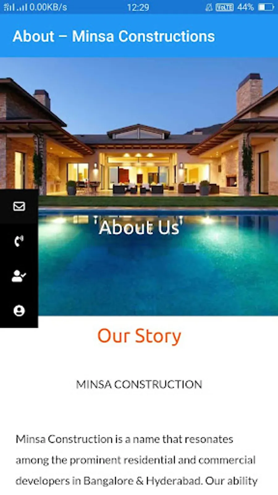 Minsa Construction is a name that resonates among the prominent residential and commercial developers in Bangalore & Hyderabad. Our ability to deliver on-time luxurious and affordable housing projects in Bangalore has ensured a continual interest from our customers. Our expertise in acquisition of land, appointment of architects, designers, construction and sales to after sales service has helped us to be counted among Bangalore & Hyderabad.