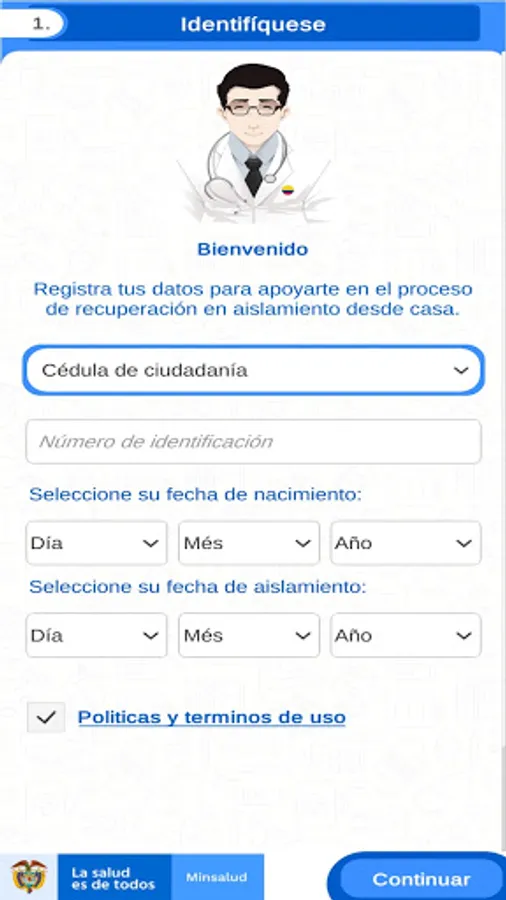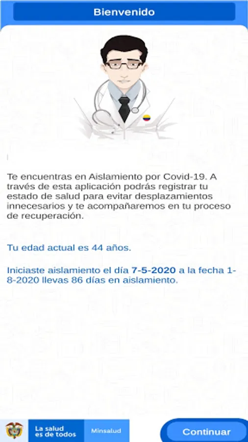 This application is available for personal monitoring and the information provided is for the exclusive use of the Ministry of Health and Social Protection of Colombia.