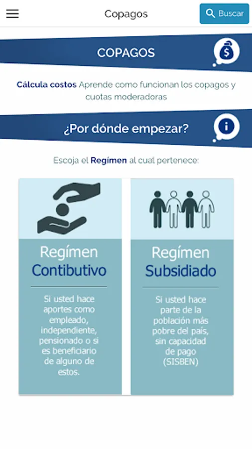 It allows citizens to access a search system where you can check the contents of the health benefit plan under the UPC entitled to residents in the Colombian national territory.