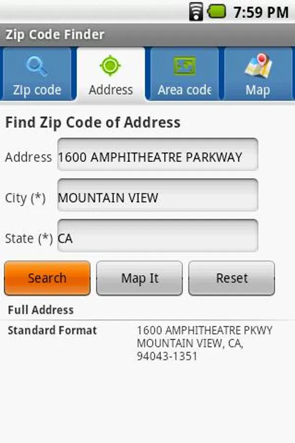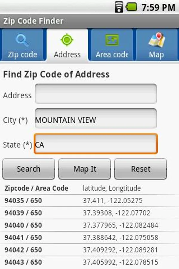 Zip Code Finder is a handy tool to do USA Zip Code / Area Code search, and USA address verification(verify a U.S. Postal delivery address, find inaccurate or missing elements in an address, and get the ZIP + 4 Code)