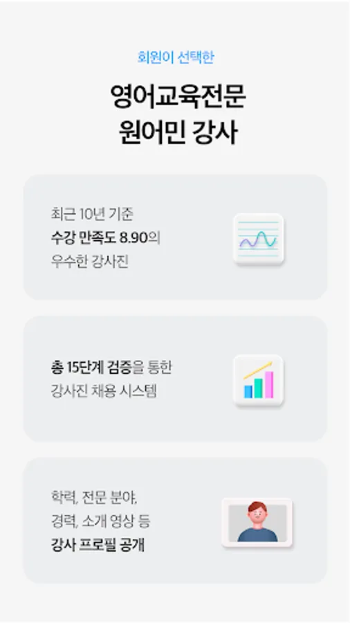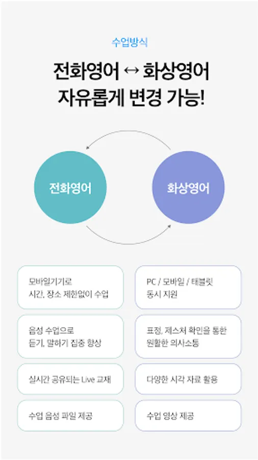 : Classes are conducted by the instructor's voice on mobile devices without time/location restrictions. Listening and speaking can be intensively improved.