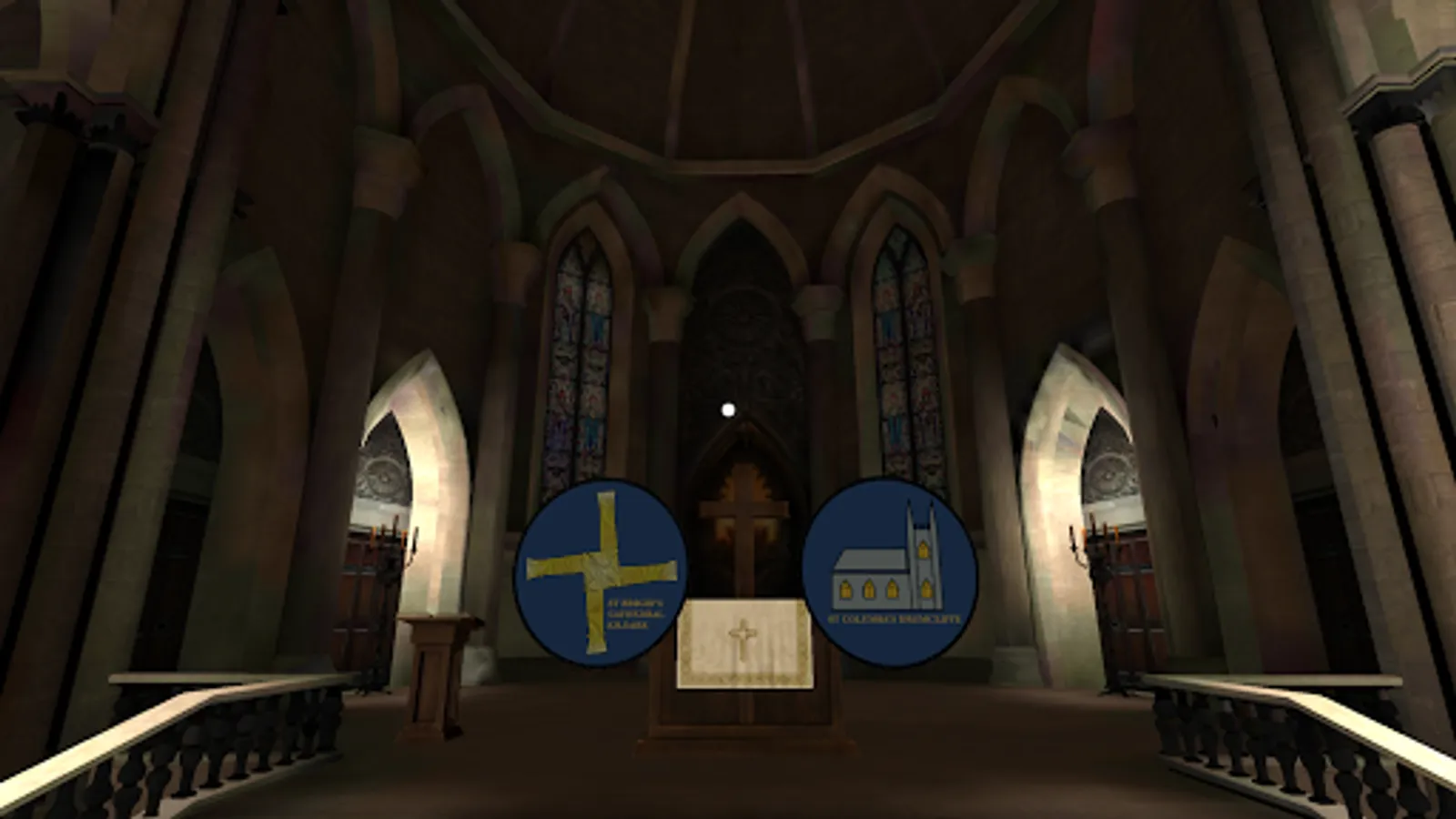 To use the app, rotate your head left and right to locate either St Brigid’s Cathedral, Kildare Town logo on the left or select the St. Columba’s Church, Drumcliffe, logo on the right. Once you have selected a location you will be taken into the VR tour where a person will guide you around set areas of the Church accompanied by an audio commentary.
