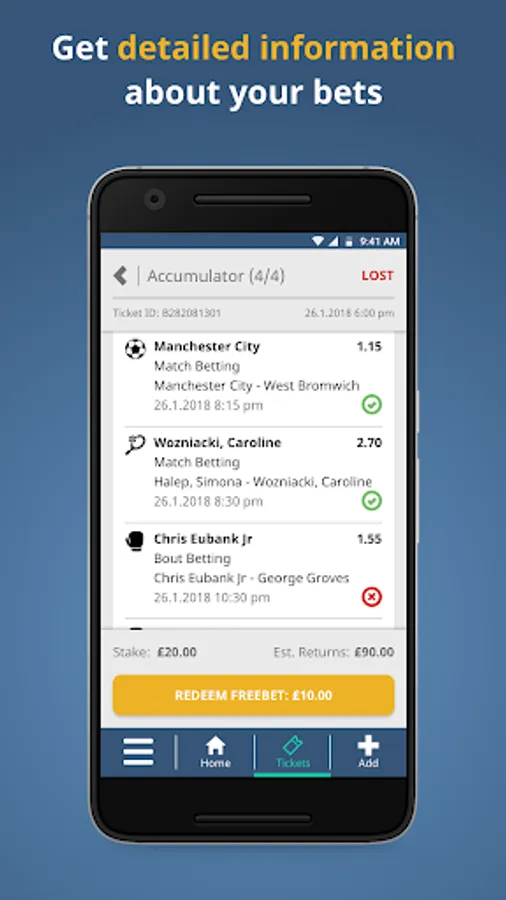 Get full control of your bet tickets anytime and anywhere.
