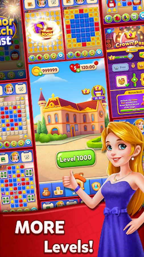 We have thousands of challenging match-3 levels for you to play in the Manor Match Blast! On this fun journey, you will solve exciting puzzles, receive coins for unlocking new areas, get extra boosters to continue your saga. Fun and challenge never ends and you will never have a dull moment in Manor Match Blast.