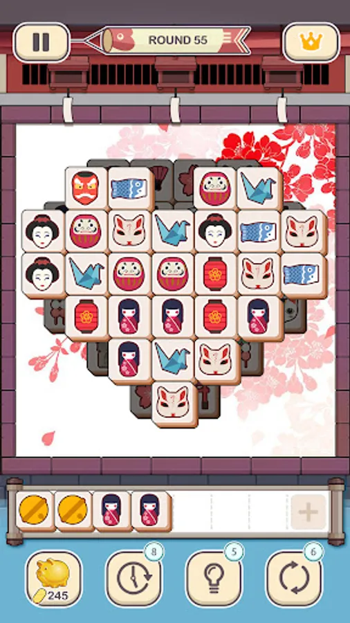 - Tap to place the tiles on the tatami into the stack.Three similar tiles will be matched.