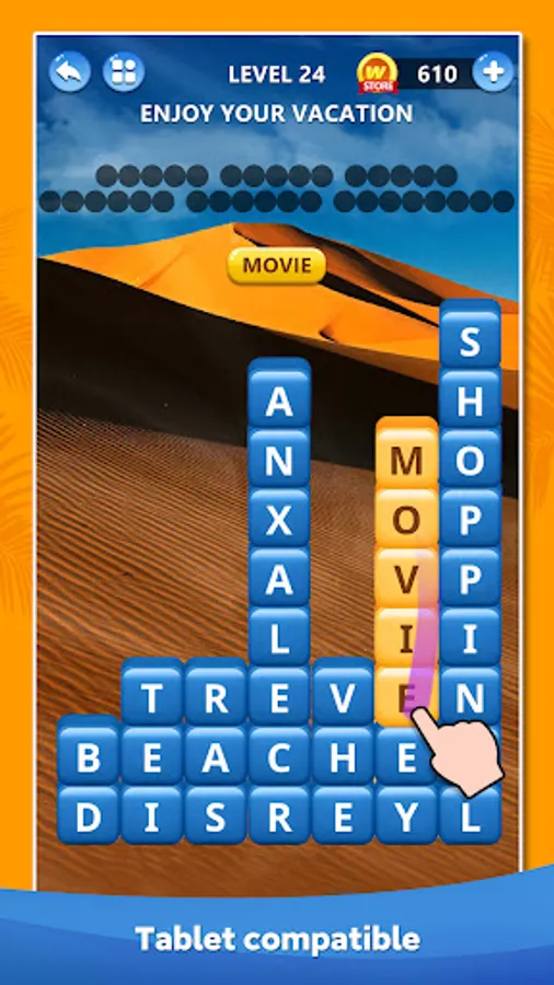 Swipe and spelling the letters and build words to collect coins and get the tiles! Find the clues to solve the crossword puzzles! DOWNLOAD Word Puzzle NOW to begin brain training and improve your spell skill!