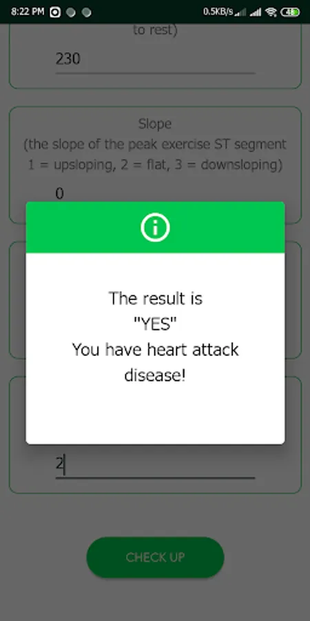 The app provides that it just takes a few seconds to know the result of disease detection as “YES” or “NO”.
