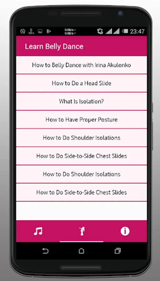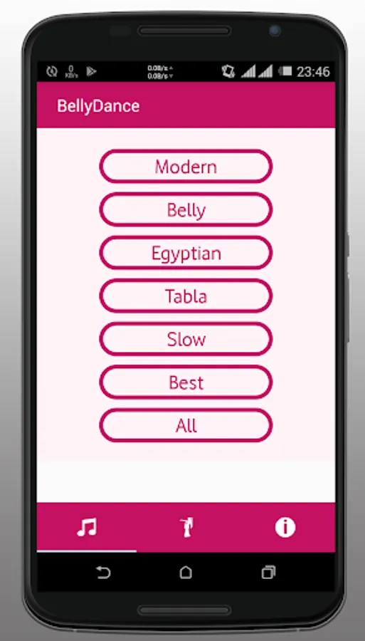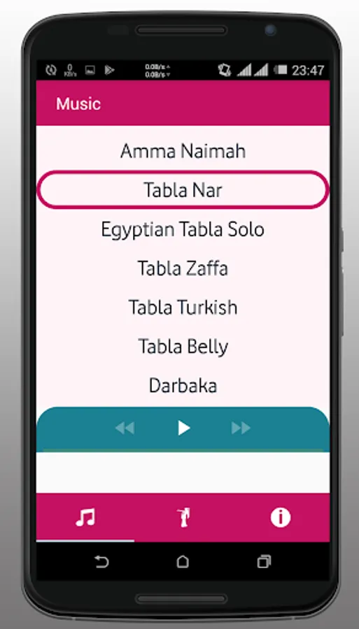 1 - Music interface, offers more than 150 sounds (songs - tracks - tabla) that have been chosen as the best sounds for Belly Dance.