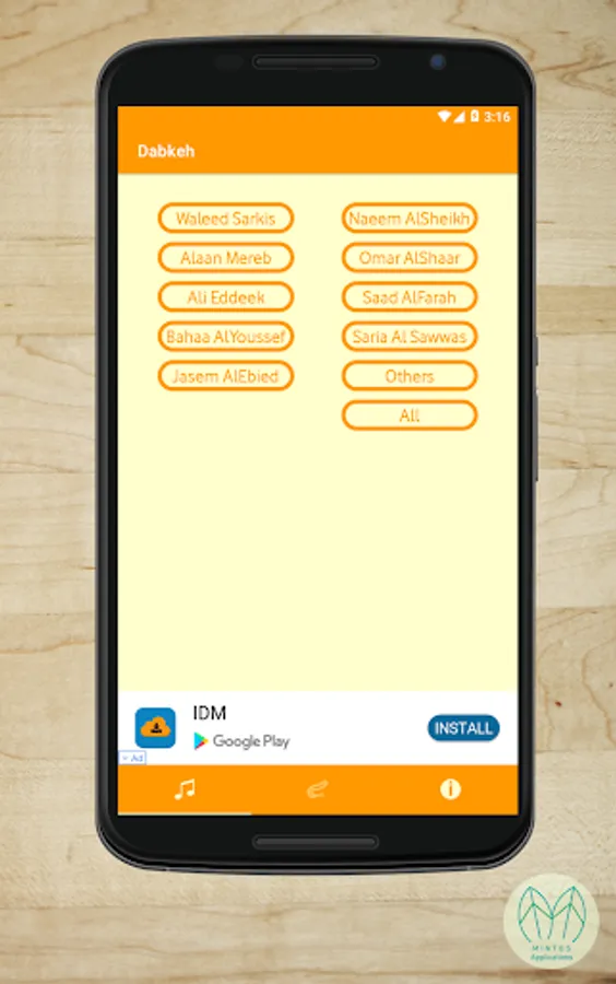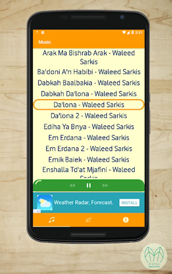 1 - Music list, contains more than 100 sounds (Songs - Zamer - Tabel) that chosen as the best sounds for Dabkeh.